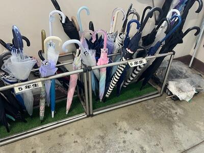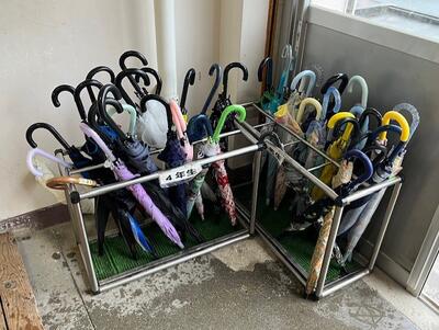 その後、昇降口内にある傘立てをのぞいてみると、どの学年もきれいにたたんであって、感心しました。