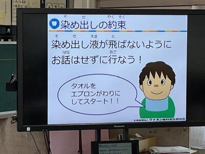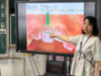 6月4日の「むし歯予防デー」にちなんで、各学級では養護教諭の光澤先生による「歯磨き指導」が行われています。