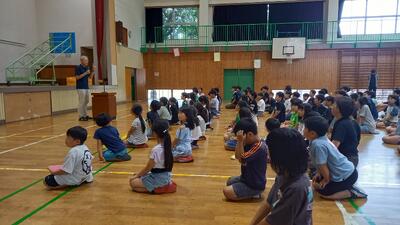 2時15分から令和7年度放課後子ども教室「シエスタ」の開校式がありました。本年度は1年生の参加者が多く、子供たちもこの日をとても楽しみにしていたようです。会のはじめに、校長先生と荒尾市教育委員会生涯学習課の原口課長から、地域の方から学ぶことの大切さ、お友達と仲良く遊ぶこと等について話がありました。その後、今日は第1回目ということで、子供たち、先生たちお一人ずつの自己紹介がありました。シエスタ関係者の皆様、本年度もどうぞよろしくお願いいたします。