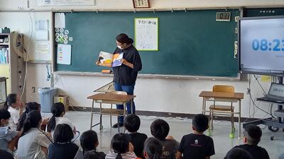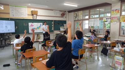 今日は、荒尾市役所の税務課から2名の方が来校され、子供たちにクイズ形式で話をしていただきました。