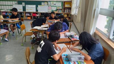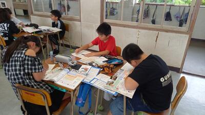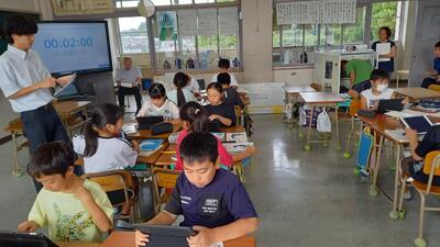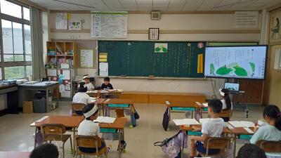 3年生から5年生は、教師不在の自習状態でしたが、5年教室ではセルフ授業(教師なしで授業を進めること)にも取り組んでいました。