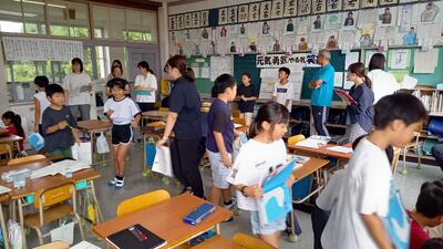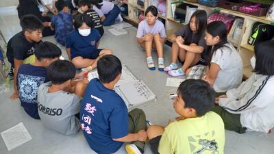 クリーン作戦のあと、各地区に分かれて振り返りが行われました。「ゴミをたくさん拾えた」「みんなで協力できた」等、子供たちからたくさんの感想が出ていました。地域の方からも、「ごみが年々減ってきている」と感想をいただきました。