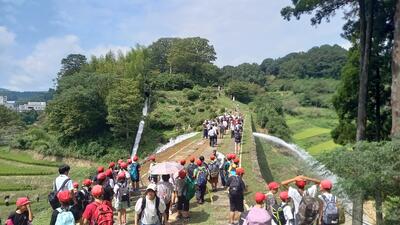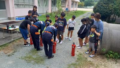 家庭科室での火事だったので、一番遠い正門前に避難しました。その後、運動場で初期消火の練習もしました。