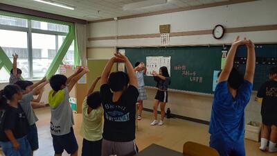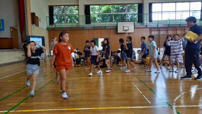 あいにくの雨模様のため、体育館では運動会本番に向けてダンスの練習が行われました。