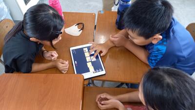 今日は、算数の授業で、お隣のペアで数当てゲームをしていました。友達と数がぴったり合うかどうかを考え、楽しそうに学習していました。