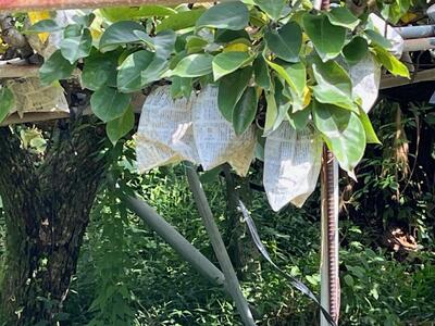 葉書の由来となった植物(タラヨウ)が、桜山郵便局の入り口にあります。