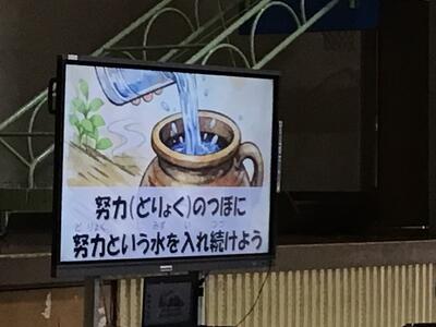 2月25日(火)に全校集会があり、校長先生から「努力の壺」の話がありました。
