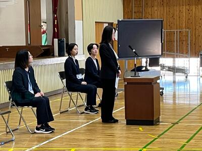 その後、校長先生から、各学年で成長したことや、頑張ったことについて話がありました。その中で、「終わりは始まり」というお話がありました。今日から、4月に向けた準備が始まります。春休み期間中も、ルールを守り(特にSNS関係や交通ルール)、生活リズムを整えて生活してほしいと思います。