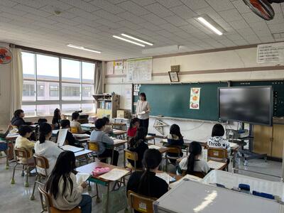 3時間目に6年生の教室には5,6年生全員が集合して「高学年部集会」が行われていました。
