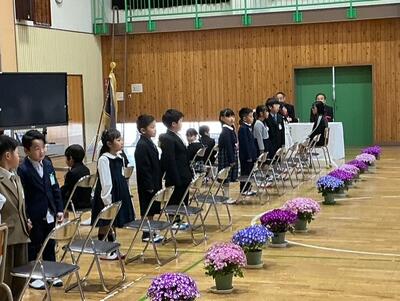総務委員の代表挨拶の後は、代表児童から花束の贈呈