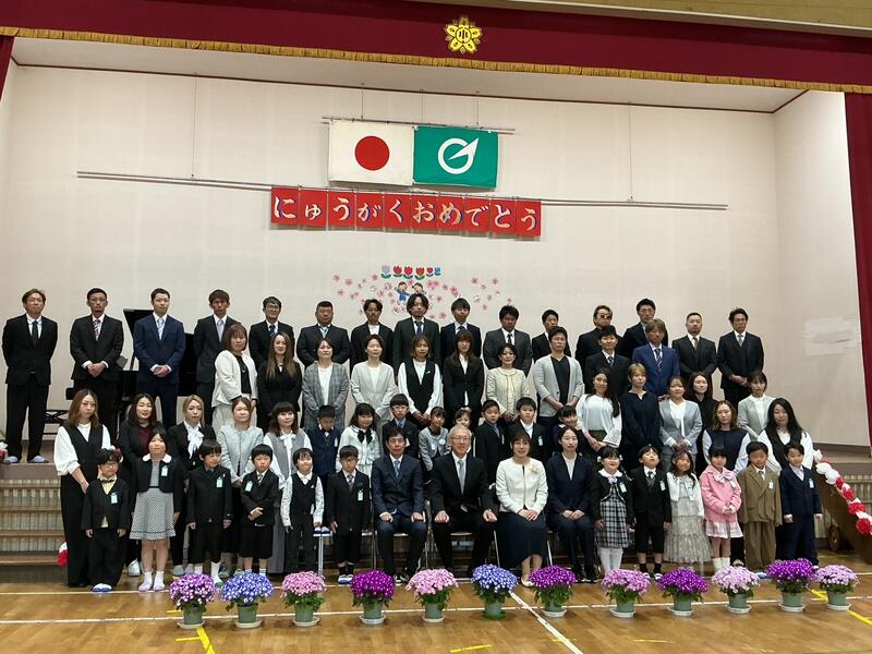 本日、1年生20名が桜山小学校に入学しました。入学式では、ちょっぴり緊張気味でしたが、最後までしっかりと式に参加し、教室では新しい教科書などを手にしました。