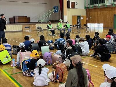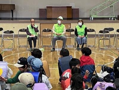 その地域児童会終了後は、全員が体育館に集まって「見守り隊」の方との顔合わせ式でした。