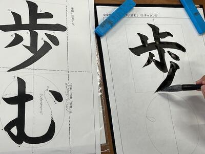 お手本を見ながら、熱心に筆を運ぶ姿が印象的でした。