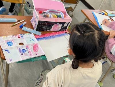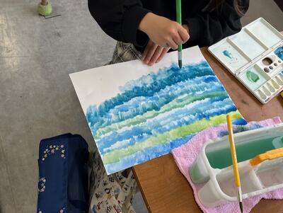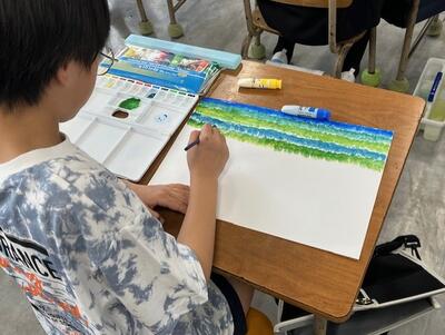 同じ時間帯に3年生の教室をのぞいてみると…筆づかいと色の変化を学べるグラデーションの授業でした。