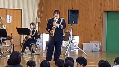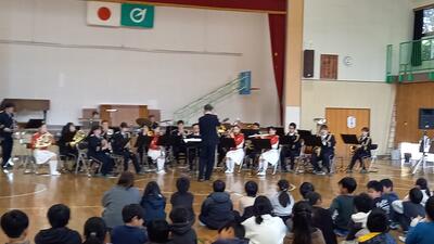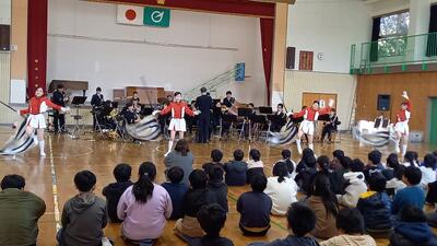 今年の鑑賞教室では、熊本県警察音楽隊の方をお招きし、吹奏楽による演奏を披露していただきました。