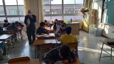 3校時に授業改善アドバイザー事業として、荒尾市教育委員会の授業参観がありました。5年生、4年生、2年生のクラスを公開しました。