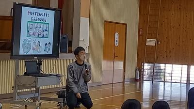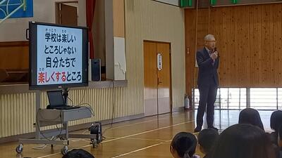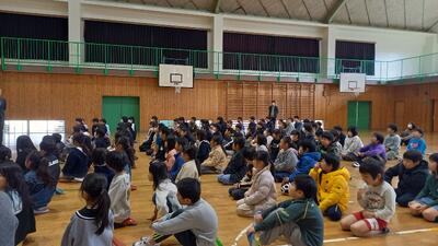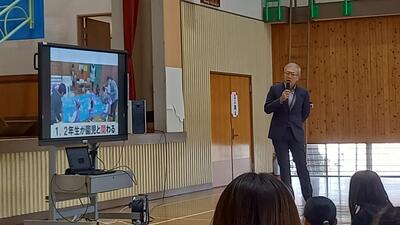 4時間目に冬休み前集会がありました。校長先生から、「学校は自分たちで楽しくするところ」「日本一のあったかい学校にしよう」について話があり、9月から12月にかけて、各学年で成長した姿をスライドで紹介していただきました。