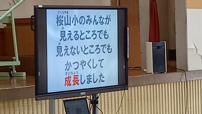 桜山小のみなさん、今の学年でいられるのも3か月とちょっとですね。人権集会で感じたことや、考えたことを、これからの生活に生かしてほしいと思います。「日本一あったかい学校」を目指し、これからもお互い支え合っていってほしいと思います。