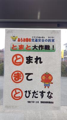 荒尾市の小中学校では、子供たちの交通事故を防ぐために、「とまと大作戦」という共通実践を行います。
