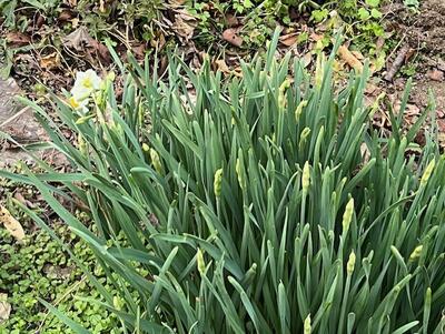 明日は最低気温も氷点下3~4℃になるなど、3連休も全国的に大雪になる予報が出ています。思わず身体を縮めてしまいそうです。桜の木も寒い時期を必死に耐えようとしていますが、その桜の木の根元には、元気に葉と茎を伸ばし、花を咲かせようとしているのを発見!水仙でした。花言葉には「うぬぼれ」といったものがある反面「尊敬」「神秘」といった前向きなものも…。冬から春へと移り変わる時期に咲くイメージは後者ですよね。