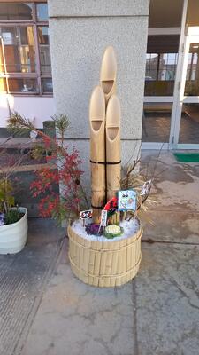 立派な門松ができました。協力いただいた桜山げんきかいの皆様、シエスタの皆様、くまモン隊の皆様、ありがとうございました。大切に飾らせていただきます。保護者、地域の皆様、ぜひみに来てください。