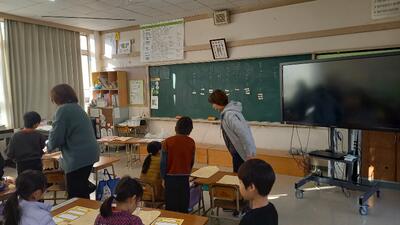朝から3年生の子供たちがそわそわ。何をしているのかというと、今日は、担任の黒田先生の誕生日とのこと。教室で黒田先生にサプライズしようと、子供たちで作戦を練っていました。