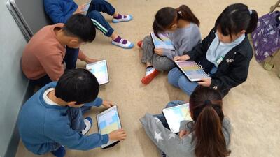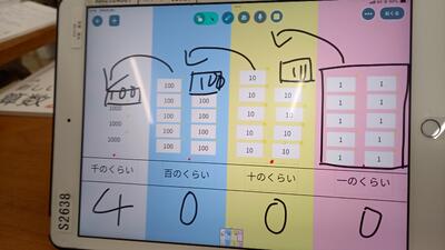 2年生 大きな数の学習で、タブレットを用いてグループ学習を行いました。