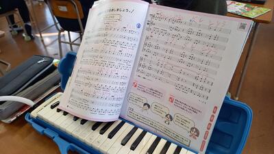5年生は、音楽の授業で鍵盤ハーモニカの練習をしていました。「キリマンジャロ」の楽曲の練習に取り組んでいました。