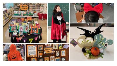 図書室もハロウィン祭り開催!ハロウィンや魔女関連の本が並んでいました。すっかり日本でも定着した感じですよね。