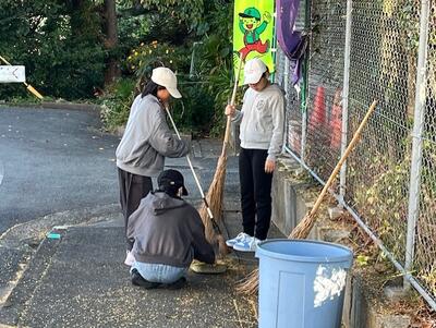 それらをほうきで集めていると徐々に子供たちが登校してきます。最近は、登校してきた6年生の女の子たちが、わたしがほうきで集めた後のかたまりを率先してちりとりで取り、大きなポリバケツに捨ててくれています。