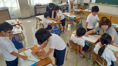 教室では、後期のめあて、係活動決めなどが行われた後、さっそく国語や算数などの授業が行われ、子供たちは頑張っていました。