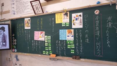 10月9日(木)に6年生のクラスで道徳科の授業研究会がありました。授業者は5年担任の堺先生です。講師として、熊本市立花園小学校の秋元千佳校長先生をお招きし、道徳科の授業づくりについて職員に講話をいただきました。「ロレンゾの友達」という教材をもとに、友達を信じ切る大切さ、自分ならどうすべきかについて議論を深めました。