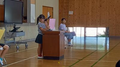 10月10日(金)で令和7年度前期も終わりです。4時間目に前期終業式がありました。はじめに6人のお友達から発表がありました。各学年の代表として、堂々と素晴らしい発表をしてくれました。