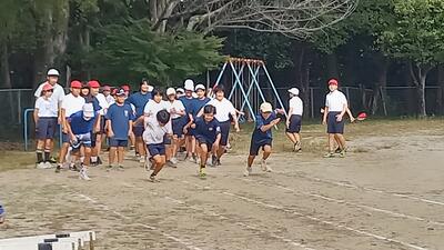 5時間目は、運動場で親睦陸上記録会に向けた練習が行われました。