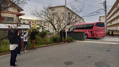 たくさんの保護者、先生方に見送られ、出発しました。6年生のみなさん、楽しい思い出をたくさん作ってくださいね。