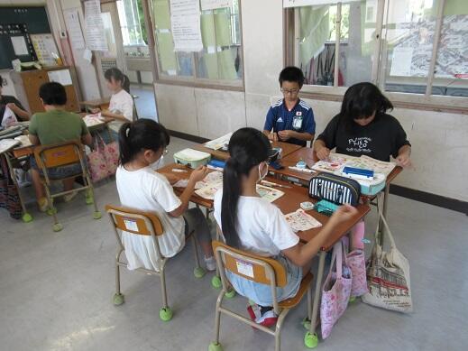 4年生は木曜日担任の小栁先生が初任者研修で不在だったため、代わりに田中しのぶ先生と読書感想画に挑戦していました。そのあとの個別指導の時間もわり算の筆算をがんばりました!
