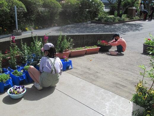 中学年は、プレゼントの花のお世話をしてくれました。心を込めて、きれいにしています。