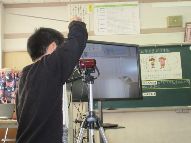 公開授業の様子。ビデオカメラで撮影し、客観的に自分を見つめます。
