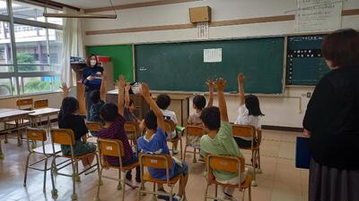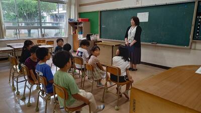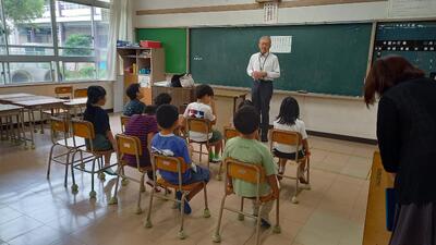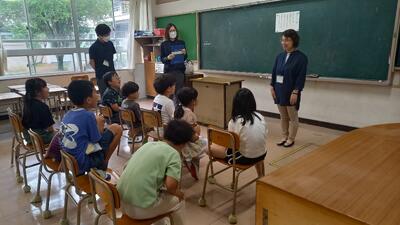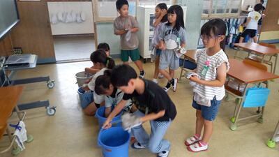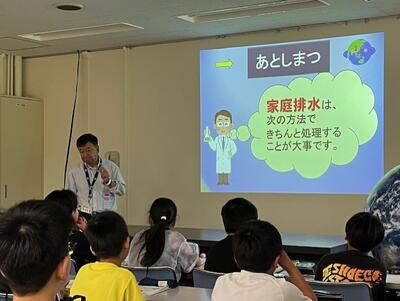 環境センターの吉海先生から、水環境について学ばせていただきました。子供たちも、1時間集中して話を聞いたり、実験をしたりとがんばっていました。