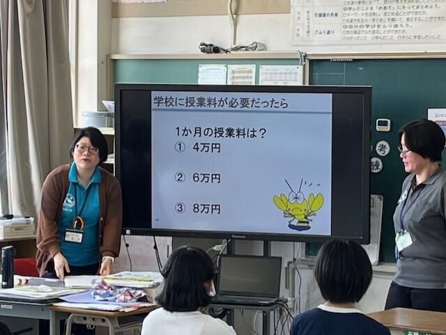 もし、税金がなかったら小学校では年間98万円もの費用を支払うことになる聞き、子供たちも驚いていました。
