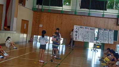 6月20日の3・4時間目に人権集会がありました。各学年、それぞれの思いを伝えたり、その思いに言葉を返したりして、なかまとしてつながっていこうとする姿がありました。