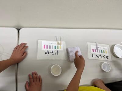 みそ汁、せんたく水、おふろの残り水の内、どれが最も川の水をよごすのか?という実験をしました。