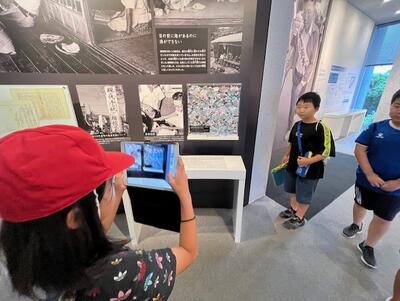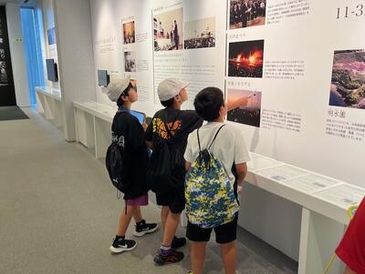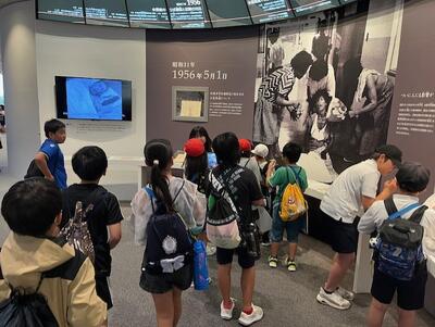 環境学習の後は、水俣病資料館内を活動班別に見て回りました。水俣病に関する様々な資料に真剣に向き合う子供たちの姿が印象的でした。