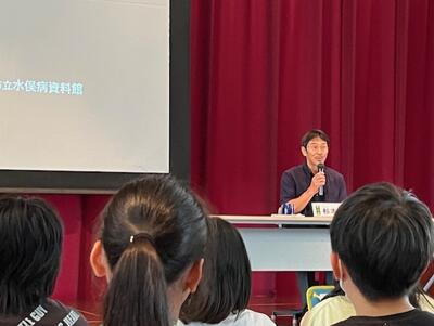 5年生は、水俣病やそこで起きた差別について学んだことを発表しました。正しい知識を身に付けようとすること、うわさや偏見を信じてはいけないことを考えさせられました。