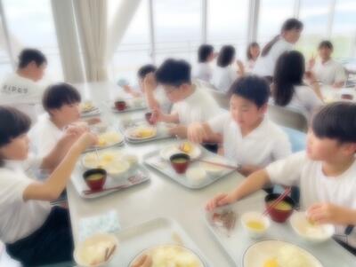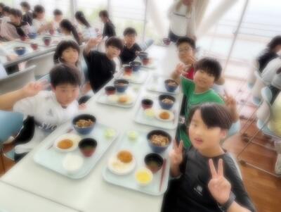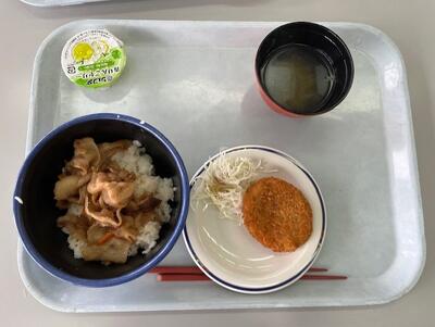 「豚丼、コロッケ、おすいもの、ゼリー」でした。みんなおいしそうに食べていました。