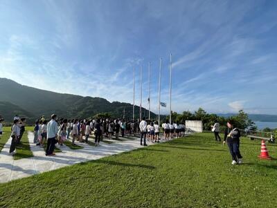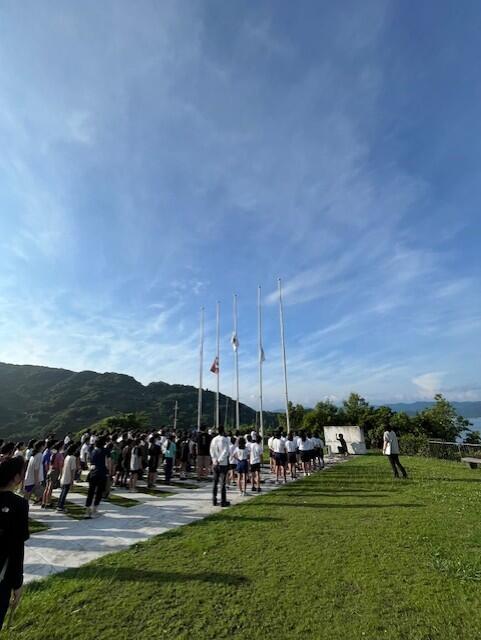 御覧のとおり、朝日に包まれて国旗掲揚からスタートしました。