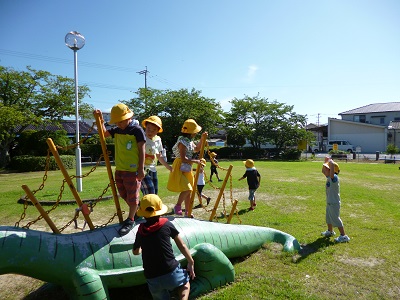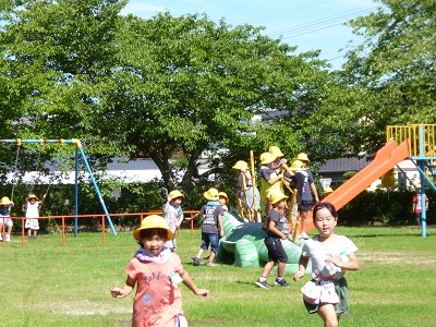 暑さに負けず、汗を流して公園で元気に遊びました。