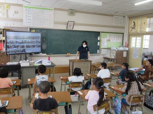 1年生が国語の「ききたいな ともだちのはなし」の学習で、夏休みの思い出を発表していました。私が見に行った時は「グリーンランドのプールに行きました。」という内容の発表があっていました。発表のあとは、質問タイムです。たくさんの子どもたちが手をあげて「水は冷たかったですか?」「深さはどれくらいでしたか?」「スライダーは長かったですか?」などたくさんの質問が出ていました。それぞれが楽しい夏休みの思い出を発表し、みんなしっかり聞いて質問していました。発表も聞き方もとっても上手な1年生でした!