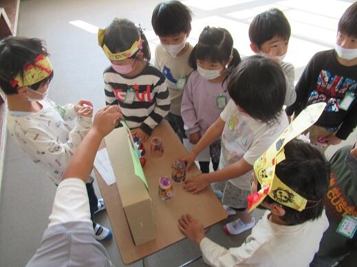 読書月間の取組として、しおり作りや読書ビンゴ、ジャンボ絵本の読み聞かせなどが行われています。
