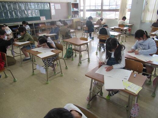 本日6年生が、全国学力・学習状況調査に挑戦しました。先週市の学力調査を受けたばかりで大変でしたが、子どもたちはしっかりがんばっていました。1時間目が国語、2時間目が算数、3時間目が質問紙調査でした。このテストはとにかく問題文が長く、いったいどこに問いがあるのだろうと思うほどです。しかし、6年生の子どもたちはあきらめずにしっかり問題と向き合っていました。6年生になり、日々成長した姿を見せてくれる6年生です!
